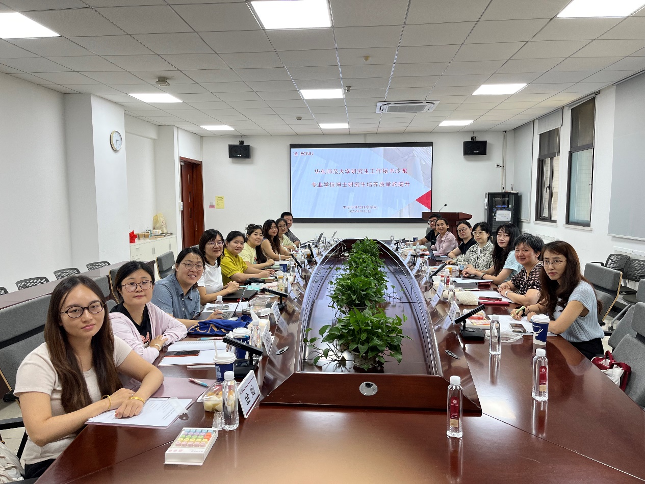2025年9月5日下午,华东师范大学研究生工作秘书沙龙“专业学位博士研究生培养质量的提升”专题活动在闵行校区生态与环境科学学院269会议室顺利举办。本次活动旨在搭建跨院系交流平台,促进工作经验分享和问题研讨。来自历史学系、哲学系、政治与国际关系学院、马克思主义学院、社会发展学院、物理与电子科学学院、化学与分子工程学院、地理科学学院、河口海岸科学研究院、生命科学学院、通信与电子工程学院、药学院等的近二十位研究生工作秘书参与沙龙活动。活动由生态与环境科学学院研究生工作秘书丁媛媛主持。