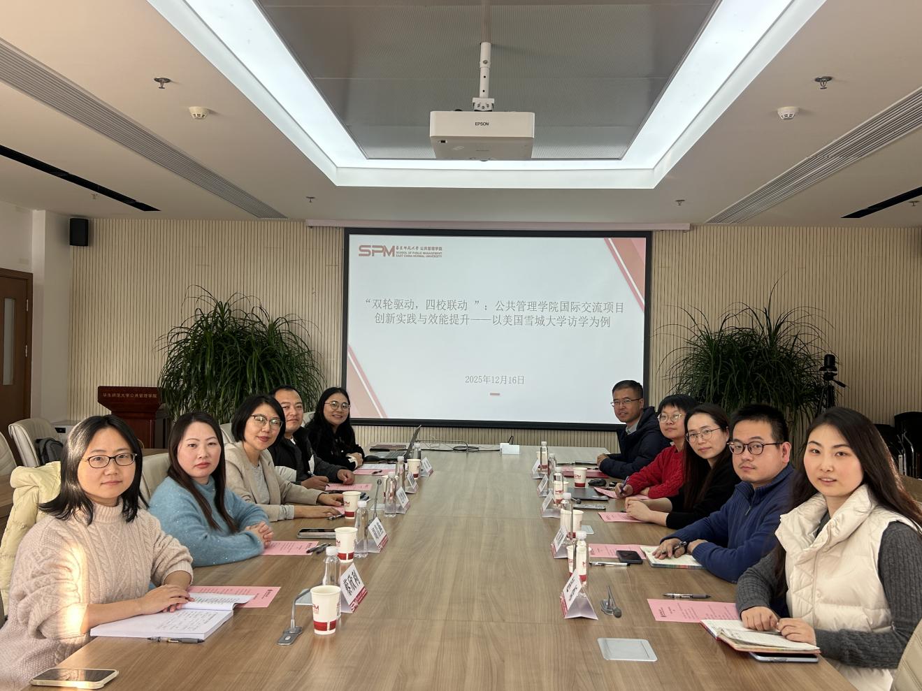 12月17日下午,一场主题为“双轮驱动,四校联动:公共管理学院国际交流项目创新实践与效能提升——以美国雪城大学访学为例”的研究生工作秘书沙龙,在华东师范大学理科大楼A座1314会议室顺利举行。来自复旦大学、华东师大的外事、教务、MBA与MPA教学事务负责人齐聚线下,围绕“双轮驱动育英才,四校联动拓新局”这一主题,深度复盘2025年美国雪城大学访学项目,并共同商讨2026年国际交流升级方案。此次会议由华东师大公共管理学院外事秘书周旭主持。